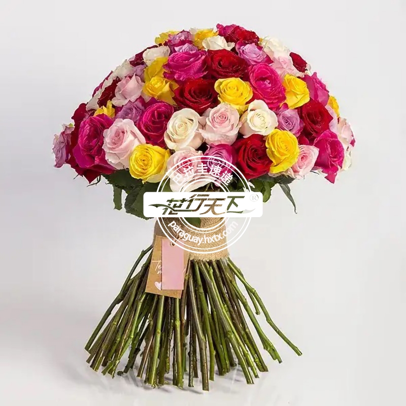 100枝不同色玫瑰组成、精美包装.